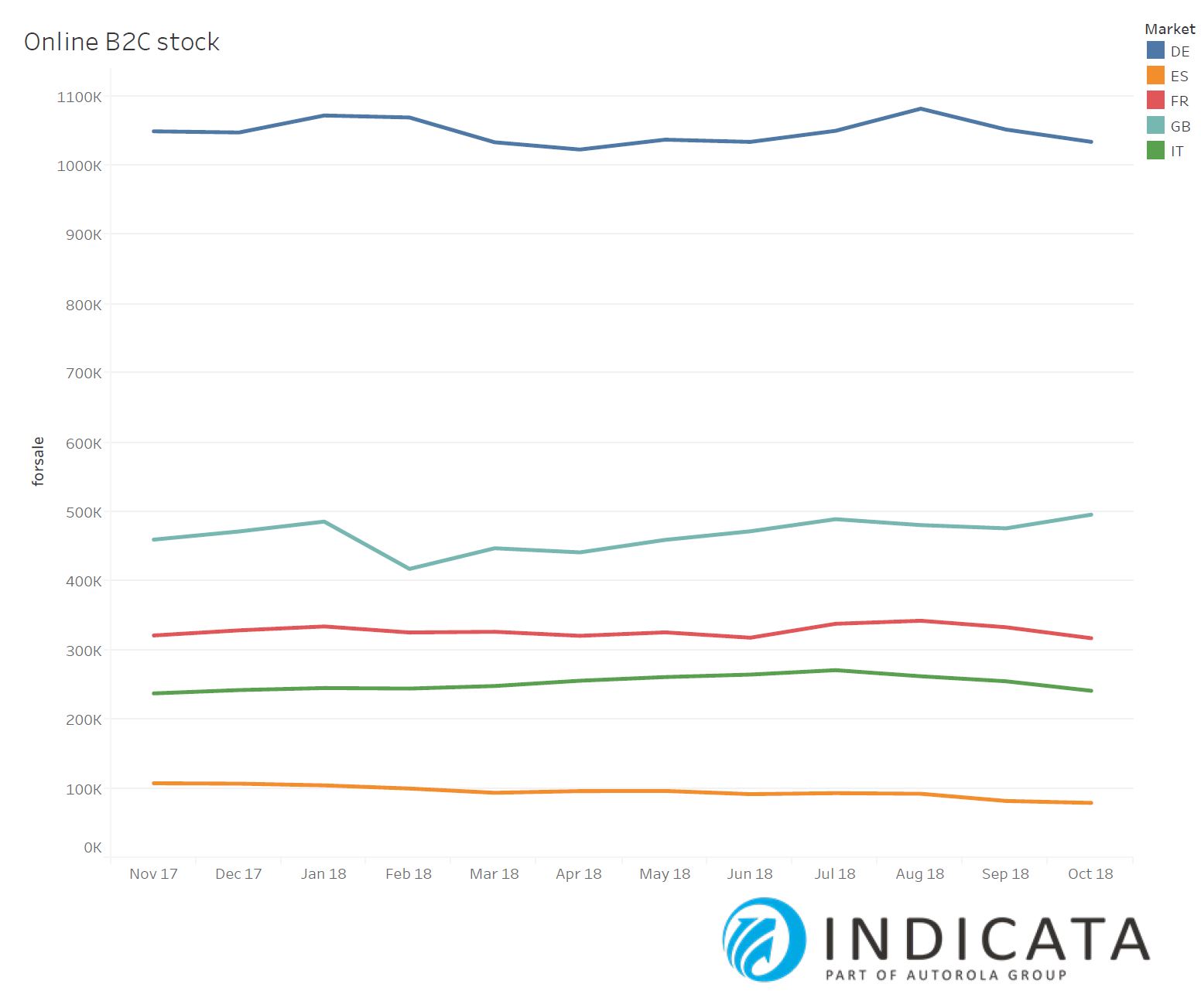 Following the drop in September, new car sales for first three quarters of the year for the Big 5 are up 0.8%. At a country level Spain is still seeing the strongest growth up 11.5% after nine months, followed by France up 6.5% with Germany third as sales growth is now just 2.4%. The political turmoil in Italy has seen sales go into reverse with total sales for the first three quarters of 2018 now down 3.0% over the same period last year; whilst the UK new cars sales continue to drop sharply with sales now down 7.5%.