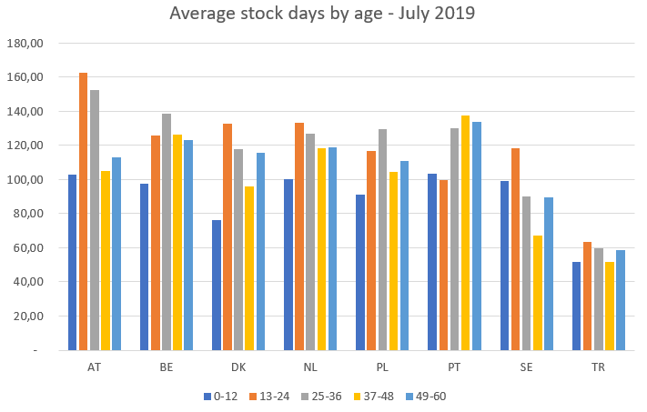 Whilst the five largest car markets are key countries to track across the industry for the major international automotive companies, it is also worth monitoring trends across the rest of Europe. A sneak preview at INDICATA’s average stock days by age across multiple markets shows the diversity of stock across Europe.