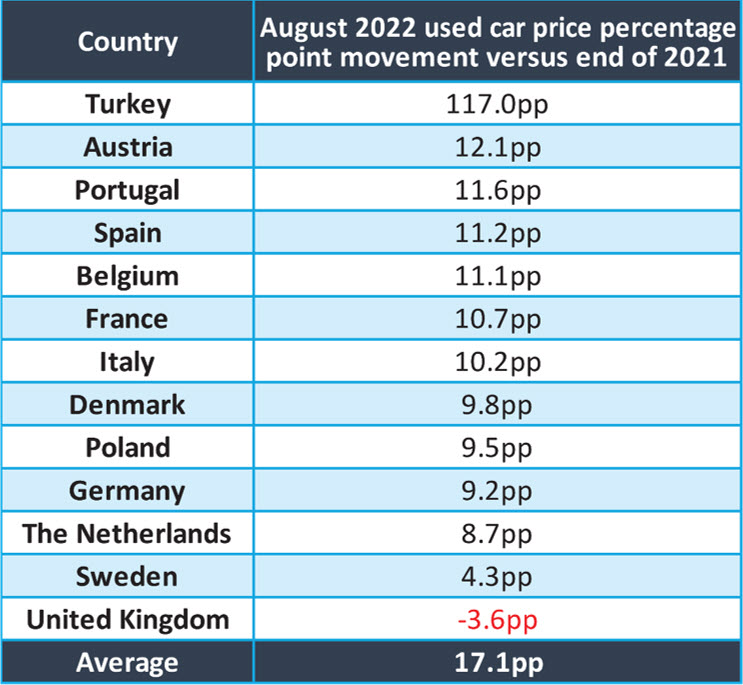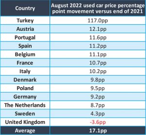 Overall, the market remains stable but used car inflation is beginning to slow down across Europe. Prices are softening across Europe and can be seen as a sign that some balance is returning to the market after two years of high prices.