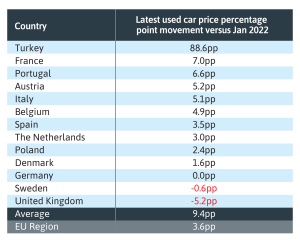 EVs have created the most headlines in the report in recent months by reporting record prices and then as stock increased and the European economies started to experience inflation record falls. The reduction in prices has certainly helped generate demand and clear ageing stock but the power train is still yet to find its level within the European market.